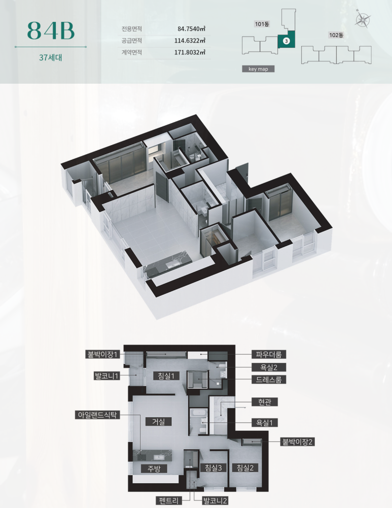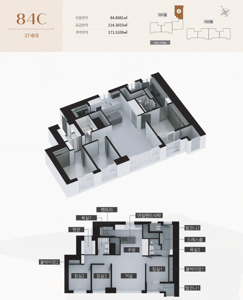 특히 전용 84㎡ 단일 면적 구성 안에서도 타입별 성격이 비교적 명확하게 나뉘어 있어, 가족 구성과 생활 패턴에 따라 선택지가 분명한 편입니다.