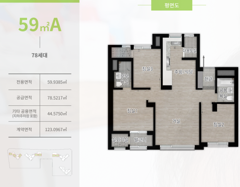 이번 3차 단지는 총 429세대 규모로 조성되며, 이 중 전용 59㎡ 타입 116세대가 일반분양으로 공급됩니다.