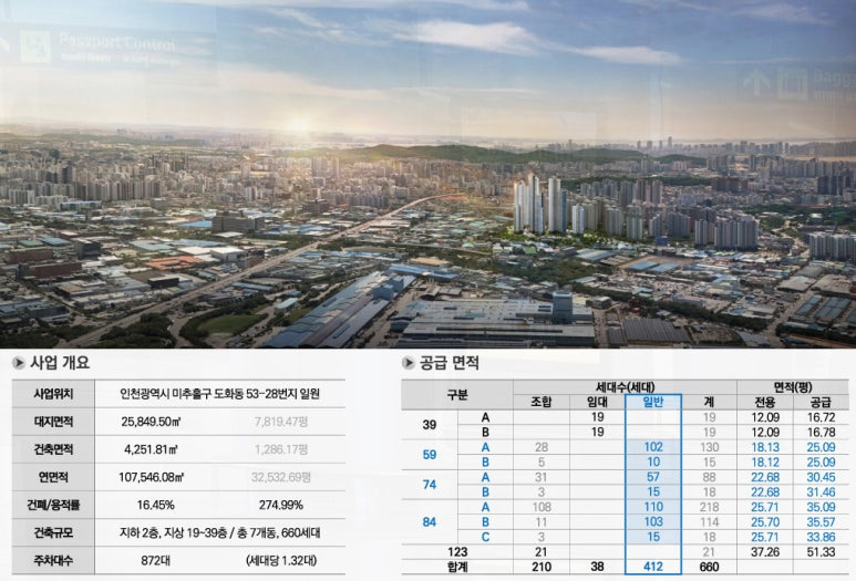 인천 미추홀구 도화동에 들어서는 두산위브 더 센트럴 도화는 지하 2층부터 지상 최고 39층까지, 총 7개 동 660세대로 구성된 단지입니다.